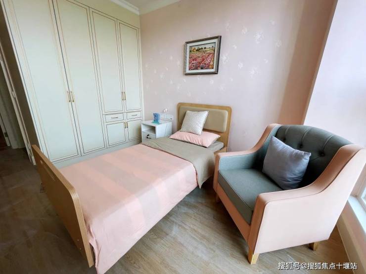 养老院总床位 176 张,划分认知症照护专区与普通护理区域,房型多样,满足单人、双人等不同居住需求;自带 3000 平方米水景花园,打造休闲活动空间;院内配套完善的照护、活动、休闲设施,打造国际标准的认知症照护单元,为长辈提供安全、舒适、温馨的居住环境。