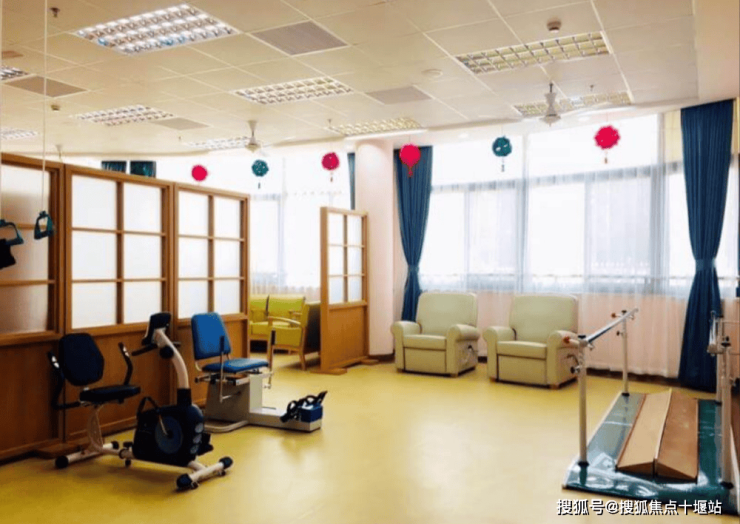 设施配置以适老安全为核心,贴合失能及部分失能老人的活动与照护需求,建筑共三层,由方形塔楼与筒形裙楼组成,巧妙化解空间布局难题,打造特色适老空间。二层依托筒形建筑中心分布的特点,设置阳光中庭,搭配清新亮丽的组合沙发,为老人打造交流互动、晒太阳的专属空间;三层平台规划露天花园,进一步拓展老人活动范围,兼顾休闲与康复需求。全院全覆盖无障碍设施,配备适老扶手、防滑地面、紧急呼叫系统等,同时完善康复辅助设施与就餐配套,细节处守护老人居住安全与便捷,适配失能群体的日常活动需求。