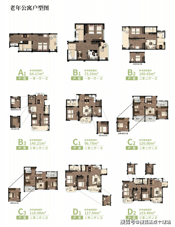 1. 居住设施:康养公寓435间标准房(面积64-153㎡),房型多样;2. 照护设施:配备专业照护床位,满足不同照护需求;3. 配套设施:完善的康养、餐饮、文旅相关设施,一应俱全;4. 智慧配置:融入智慧养老模式,兼顾舒适与便捷。