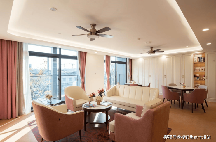 机构以 “居家化” 为设计核心,每间居室都强调收纳与细节营造,让空间充满家的气息。公共区域包含康复大厅、小组团客厅、餐厅、厨房,以及认知症单元专属的阳光客厅与私享庭院。